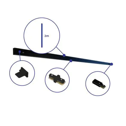 Bright Choice Rail Set Rail Monophasé 2 Mètre Noir | incl. Embout, Connecteur d’Alimentation et I-Connecteur