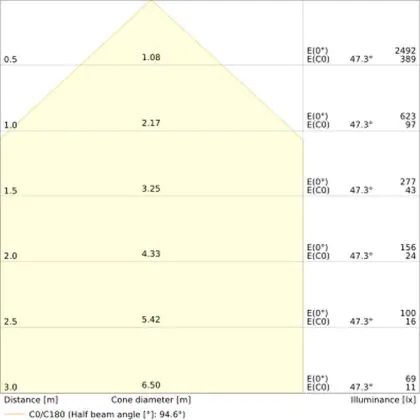 L'indice d'éblouissement unifié (UGR) indique dans quelle mesure la lumière d'un produit est éblouissante. Cette valeur varie d'une application à l'autre et doit être conforme aux normes européennes (EN 12464-1). Une faible valeur UGR signifie un faible facteur d'éblouissement. Pour les bureaux et les écoles, l'éclairage avec une valeur UGR < 19 est obligatoire, et pour les espaces ouverts, une valeur UGR < 22 est obligatoire.