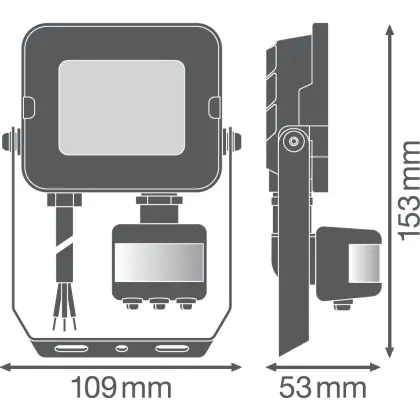 Ledvance Projecteur LED Compact Noir 10W 1000lm 100D - 840 Blanc Froid | IP65 - Symétrique - Détecteur de mouvement et de lumière