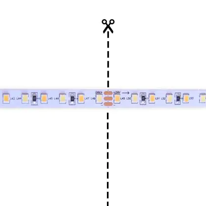Ce chiffre indique le nombre de points d'éclairage LED par mètre sur le ruban. La règle est la suivante : plus il y a de LED par mètre, plus la lumière/le rendement lumineux est puissant.