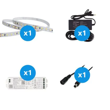 Ce chiffre indique le nombre de points d'éclairage LED par mètre sur le ruban. La règle est la suivante : plus il y a de LED par mètre, plus la lumière/le rendement lumineux est puissant.