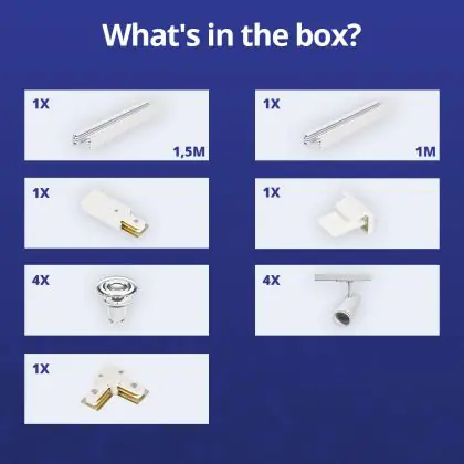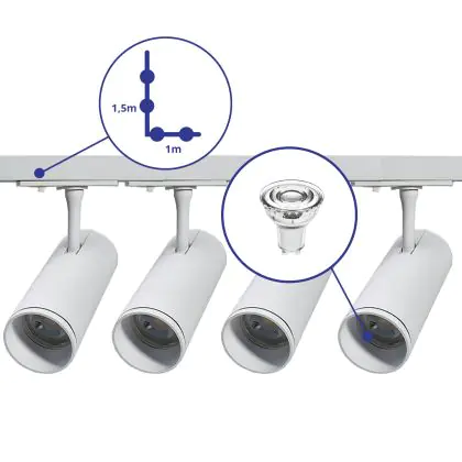 Bright Choice Complete Set 1-Fase Rail L 1 x 1,5 Meter Wit | incl. 4x Spot + GU10 2700K 3W Dimbaar + Eindkap, Voedingsconnector en L -Verbindingsstuk