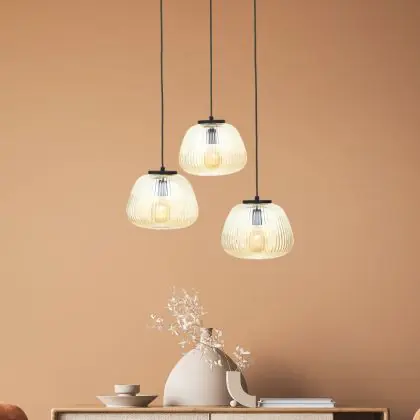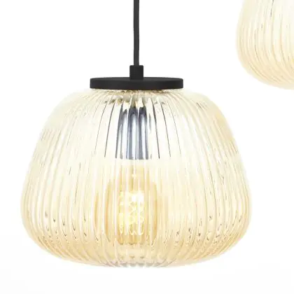 Brilliant Kaizen Hanglamp Glas Hanglamp Metaal Zwart Beige | 400mm - Geschikt voor 3x E27