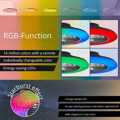 Brilliant Salerno Plafondventilator Kunststof Metaal Zwart 36W 4700lm - 830-865 CCT+RGB | 485mm - Afstandsbediening Dimbaar