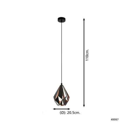 Eglo Pendelarmatuur Carlton 1 Zwart, Koper | Geschikt voor E27