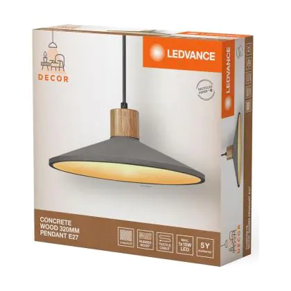 Ledvance Decor Beton/Staal/Hout Pendelarmatuur 320 Donker Grijs | Geschikt voor E27