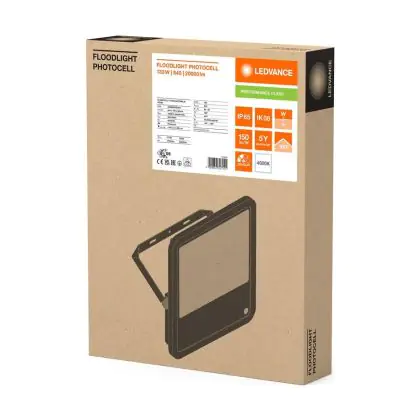Ledvance LED Floodlight Aluminium Zwart 133W 20000lm 100D - 840 Koel Wit | IP66 - Lichtsensor - Symmetrisch