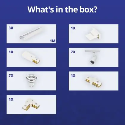 | Fabrikantnaam | Complete L shaped 1-Phase Track Set White incl. 7x Spot fixture + GU10 2700K 3W Dim – 1 x 2 meters i | |