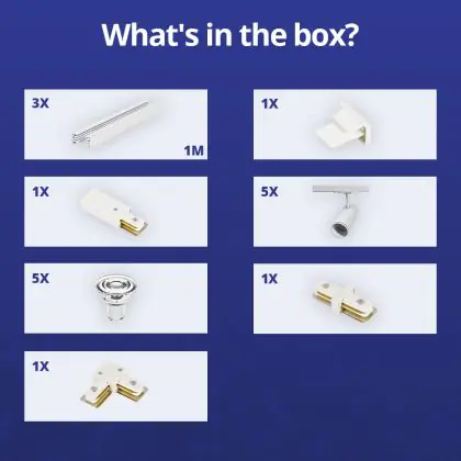 | Nom du fabricant | Complete L shaped 1-Phase Track Set White incl. 5x Spot fixture + GU10 2700K 3W Dim – 1 x 2 meters i | |