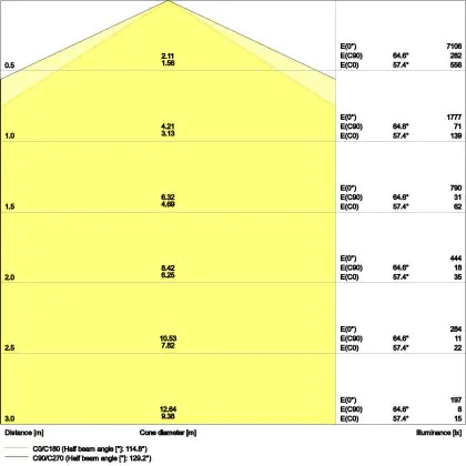 Un angle de diffusion est également appelé angle de rayonnement et indique l'angle du faisceau lumineux provenant d'une source lumineuse. Plus l'angle de diffusion en degrés (D) est petit, plus le faisceau est étroit.