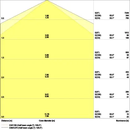 ![]() Le code couleur se compose de l'indice de rendu des couleurs (IRC) et de la température de couleur (Kelvin). Le premier chiffre indique le rendu des couleurs (1 = très mauvais rendu des couleurs, 9 = meilleure authenticité des couleurs). Le deuxième et troisième chiffre indiquent la température de la couleur. Exemple : Le code couleur "830" indique que la lampe a un bon rendu des couleurs (8) et une couleur de lumière blanche chaude (30 = 3000K). |