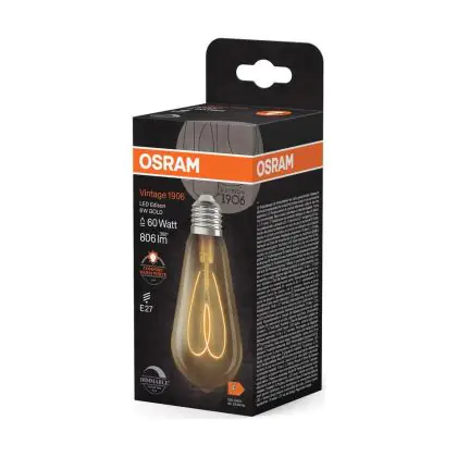 Osram Vintage 1906 LED E27 Edison Filament Dorée 8W 806lm - 922 Blanc Très Chaud | Meilleur Rendu Des Couleurs - Dimmable - Équivalent 60W