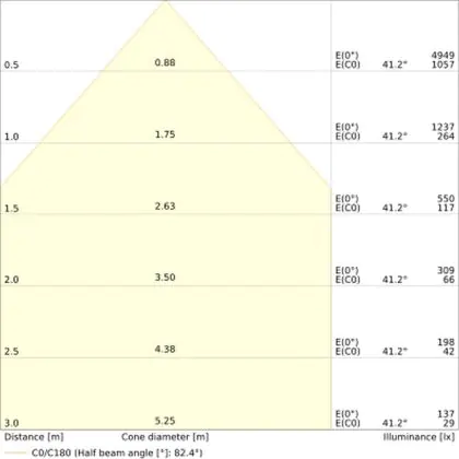 De gradenbundel geeft informatie over hoe breed het licht wordt uitgestraald. Dit zit tussen de 0 en 360 graden (D). Hoe kleiner de hoek, hoe specifieker de lichtbundel is. Over het algemeen is een smalle gradenbundel perfect voor sfeer- of accentverlichting, terwijl een brede gradenbundel ideaal is om grote oppervlaktes te verlichten.