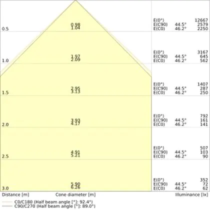 De lichtopbrengst (Lumen), geeft weer hoe krachtig het uitgestraalde licht is. Dit is belangrijk om te weten om de juiste sfeer te creëren. 0 tot 400 Lumen is bij uitstek geschikt voor accent- of sfeerverlichting. Een hoger aantal Lumen is, afhankelijk van de grootte van de ruimte, beter geschikt als ondersteunende- of basisverlichting. Heb je plafonds hoger dan 4 meter, dan is een lichtopbrengst van minimaal 8000lm aan te raden indien heldere verliching gewenst is (vb. in werkomgevingen).
