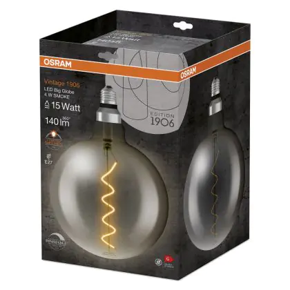 Osram Vintage 1906 LED E27 Globe Filament Smoke 200mm 5W 110lm - 818 Zeer Warm Wit | Dimbaar - Vervangt 25W